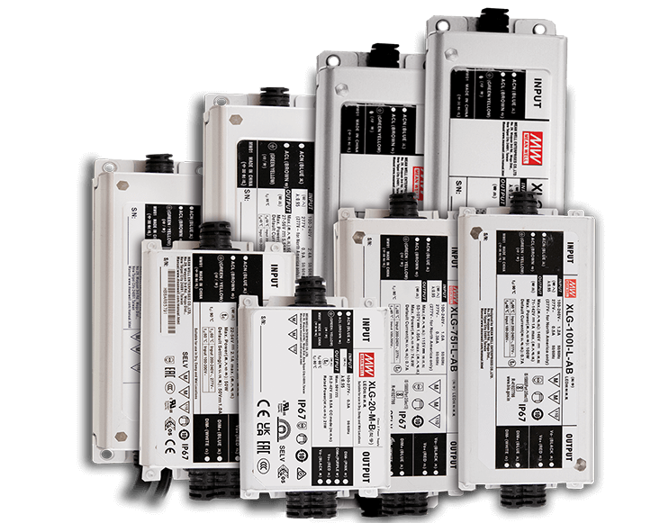 XLG全系列從20~320W瓦數(shù)齊全,方便客戶針對(duì)相同系列燈具延伸使用,提供完整的防水電源解決方案。恒功率設(shè)計(jì)可提供更寬電流使用范圍,輸出電流可在70~100%調(diào)整足瓦使用,減少客戶修改及備庫的問題。