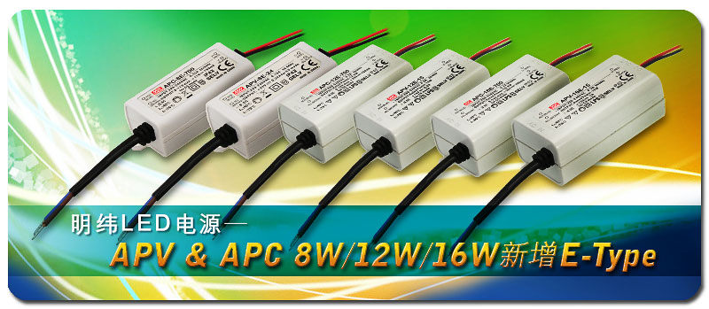 ”APV-8/12/16等系列”以及”APC-8/12/16等系列”,為具有高性價比之經(jīng)濟(jì)款低功率LED電源供應(yīng)器(或驅(qū)動器)。明緯現(xiàn)以相同的機(jī)殼,新推出了工作於230VAC范圍、具備更高功率因數(shù)、更小空載消耗功率(<0.5W)和更短啟動時間(<500ms)的新產(chǎn)品”APV-8E/12E/16E”以及”APC-8E/12E/16E”等系列。此二系列均提供了2年保固,產(chǎn)品符合CE宣告,且正進(jìn)行安規(guī)ENEC EN61347等相關(guān)標(biāo)準(zhǔn)的取證(預(yù)計於2016/4取證完成)。產(chǎn)品規(guī)格書已公告於明緯官方網(wǎng)站,如您有任何問題,請與明緯業(yè)務(wù)代表聯(lián)系。