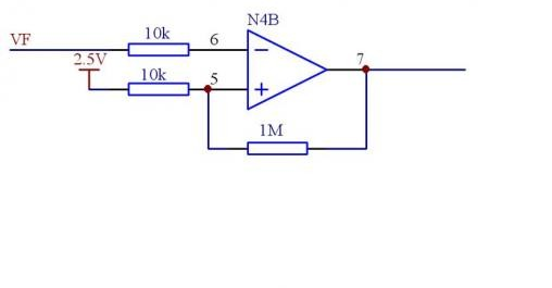 在下圖中,1M電阻就起到滯環(huán)的作用,如果沒有1M電阻,很明顯,VF電壓達到2.5V運放輸出低電平,低于2.5V,運放輸出高電平。增加1M電阻后,在運放輸出低電平時,6腳電平為0.7+(2.5-0.7)*1000/1010=2.48V。當VF低于6腳電平后,7腳輸出高電平(如果運放供電15V,7腳輸出可按照14V計算)可以計算此時6腳電平為2.5+(14-2.5)*10/1010=2.61V,如果這是一個輸入欠壓保護電路,且VF為100:1的取樣,則當輸入電壓高于261V,電路正常工作,當電壓低于248V才會欠壓保護,這樣就增強了保護電路的抗干擾能力。