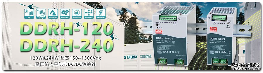 近年來光伏、儲能…等再生能源相關(guān)行業(yè)需求驟增,明緯繼推出DDRH-60、RSDH-150/300后(詳如下表),緊接著新上市120W/240W超寬250~1500Vdc高壓輸入導(dǎo)軌式DC-DC轉(zhuǎn)換器~ DDRH-120/240系列。